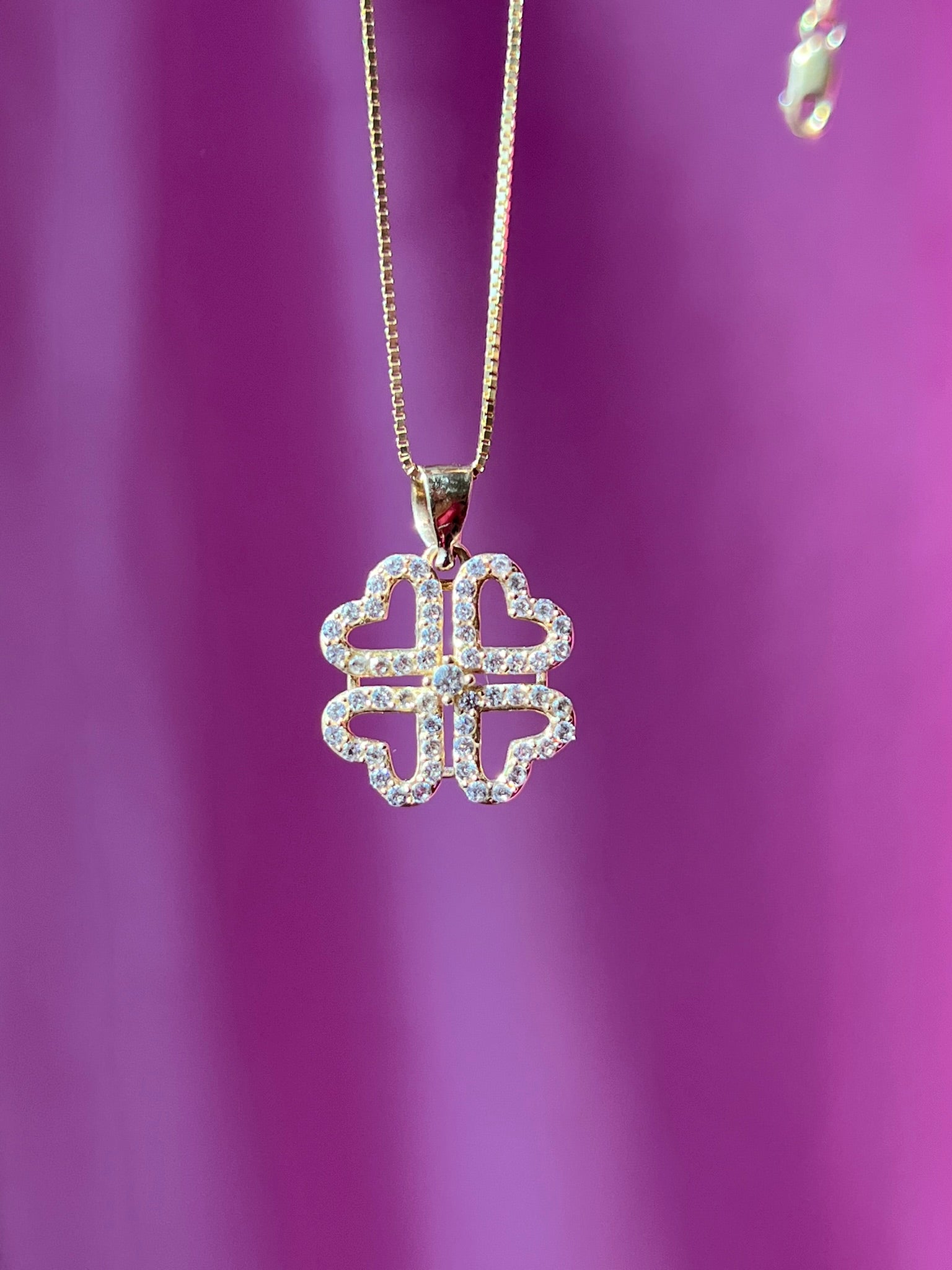 "Embrace love and luxury with our 10K Gold Clover of Hearts Pendant. The intricate design features 4 micro pave hearts arranged in a clover shape, making it a symbol of love, luck, and prosperity. Made of the finest 10K Gold, this pendant is the perfect addition to any jewelry collection."