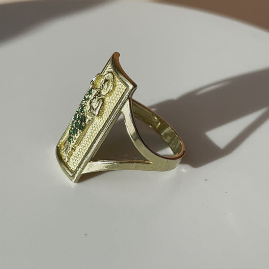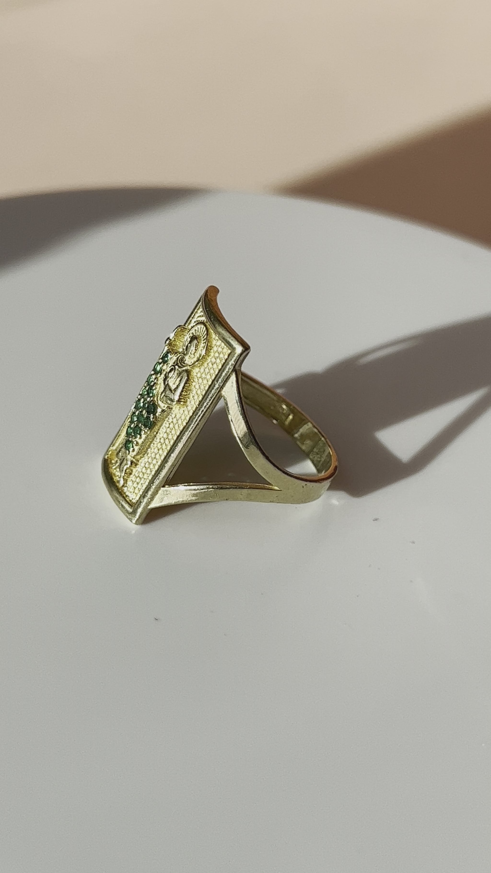 This 10K Gold Green San Judas Ring is a masterpiece of craftsmanship. Sleek, solid gold, and adorned with dazzling green zirconia's, this ring is sure to make an unforgettable statement! Perfect for any special occasion, it's a timeless treasure that will be cherished forever.